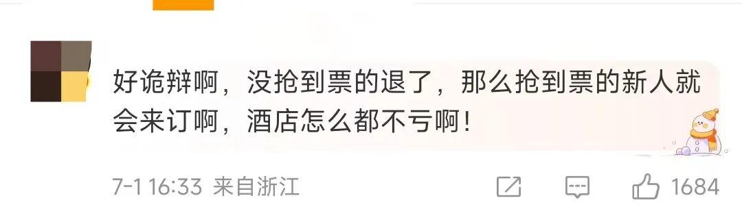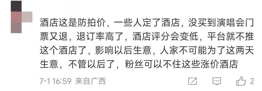 但酒店的这一解释并不被所有人认可,有粉丝在社交媒体上表示,“酒店不能因为个别退订行为,就将所有消费者都视为‘恶意’,如此离谱的涨价,无疑是将成本转嫁给了真正有需求的粉丝。”