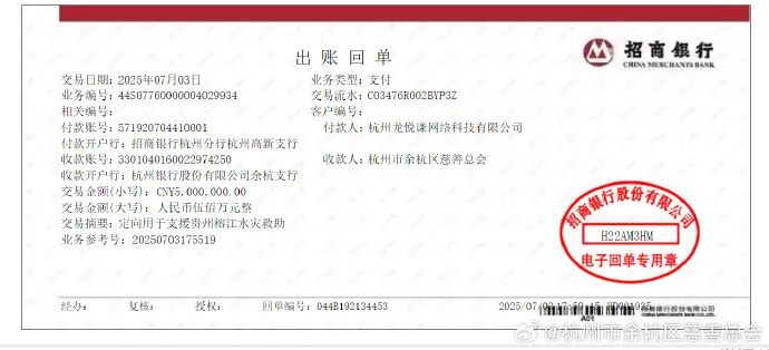 近日,贵州榕江遭遇特大洪水,灾情严重,7月3日,黄子韬通过杭州慈善总会向贵州榕江捐赠500万元现金,引发网友热议。