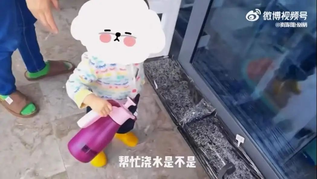 而在此次的视频末尾,2岁的三胎小女儿也出现在了镜头中,她走路还不太稳,却拿着小水壶,学着样子一起浇菜,模样十分可爱。苗苗细心地用可爱贴纸挡住了小女儿的正脸,但从背影来看,她与姐姐安娜小时候很像。