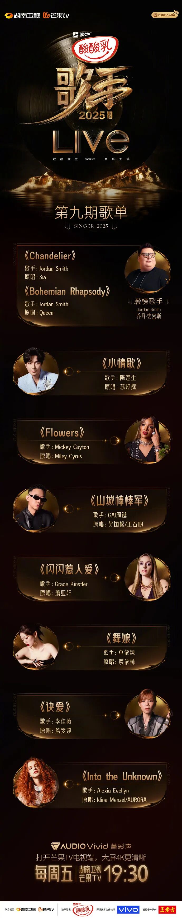 7月11日晚,《歌手2025》第九期播出,超实力唱将Jordan Smith乔丹·史密斯袭榜成功,李佳薇、陈楚生守榜失败。