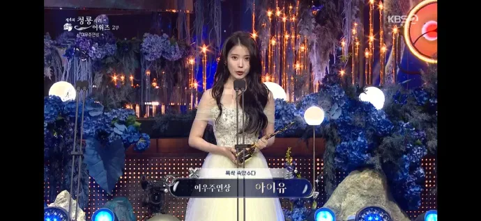 青龙电视剧大赏最佳女主角奖:IU《苦尽柑来遇见你》。恭喜IU拿下青龙视后!