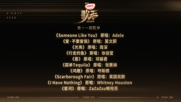7月24日,歌手官方宣布第十一期赛制为返场冲榜+终极揭榜赛,此前淘汰的歌手格瑞丝将袭榜A-Lin黄丽玲,揭榜歌手胡海泉、云飞将从Grace挑战之外的在线歌手中,选择一位发起1V1挑战。