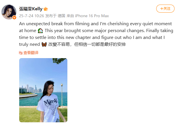 近日,因《璀璨之城》被叫停,终于有时间休息的张曦雯在社交平台发文写道:“An unexpected break from filming and I’m cherishing every quiet moment at home. This year brought some major personal changes...”(“拍戏的意外空档,我很珍惜在家里的每一个安静时刻。今年带来了重大的个人转变,我终于开始适应新的生活篇章,也努力弄清楚自己是谁,真正需要什么。”)