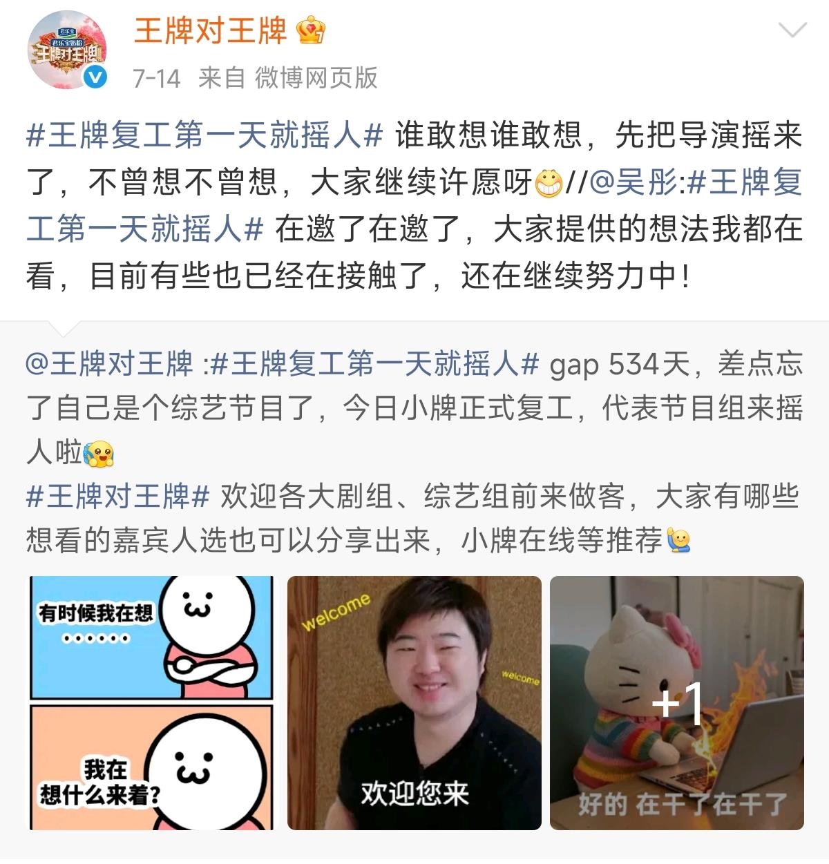 7月14日,王牌官方曾在社交媒体发起互动征集活动,公开邀请观众提名最期待亮相的嘉宾及剧组,网友反响十分热烈,7月27日,《王牌9》在浙江杭州正式启动录制,宣告这档承载无数欢乐记忆的“国民级”综艺,将再度与观众温暖重逢。
