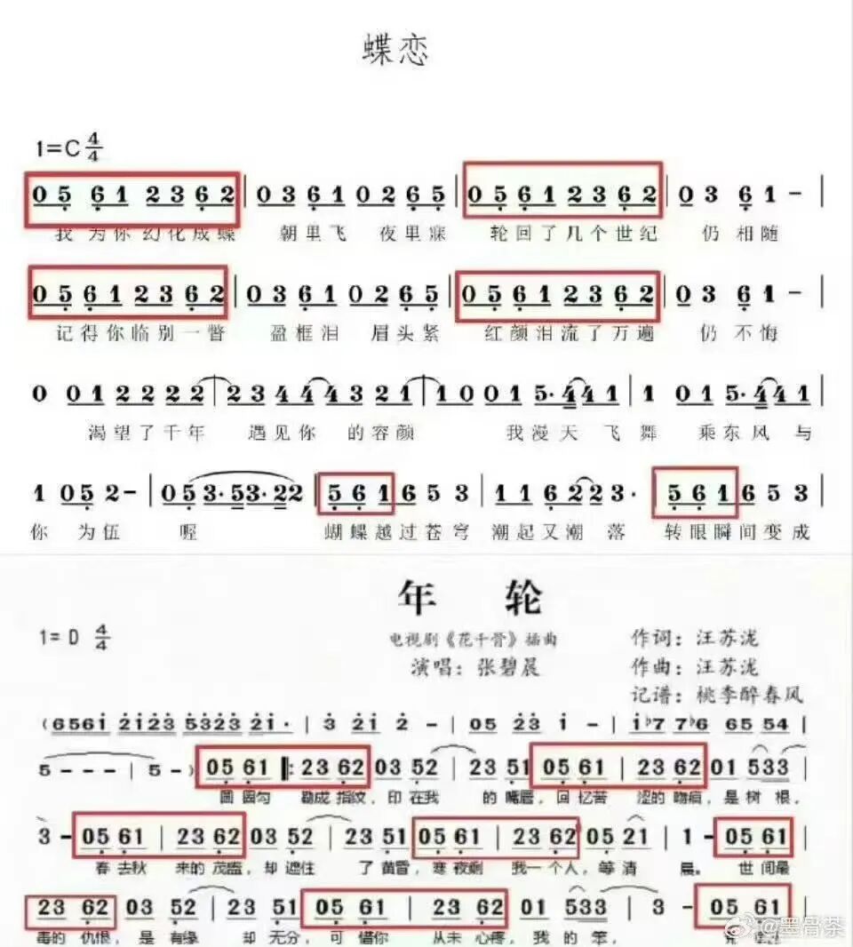 有网友晒出五线谱,称不存在抄袭。其认为,只是重复了个“2362”的动机,旋律完全不同。