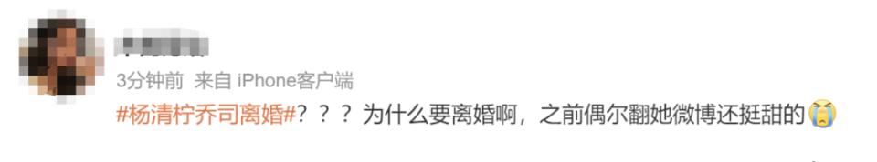 8月3日,#杨清柠乔司离婚#话题冲上微博热搜第一。