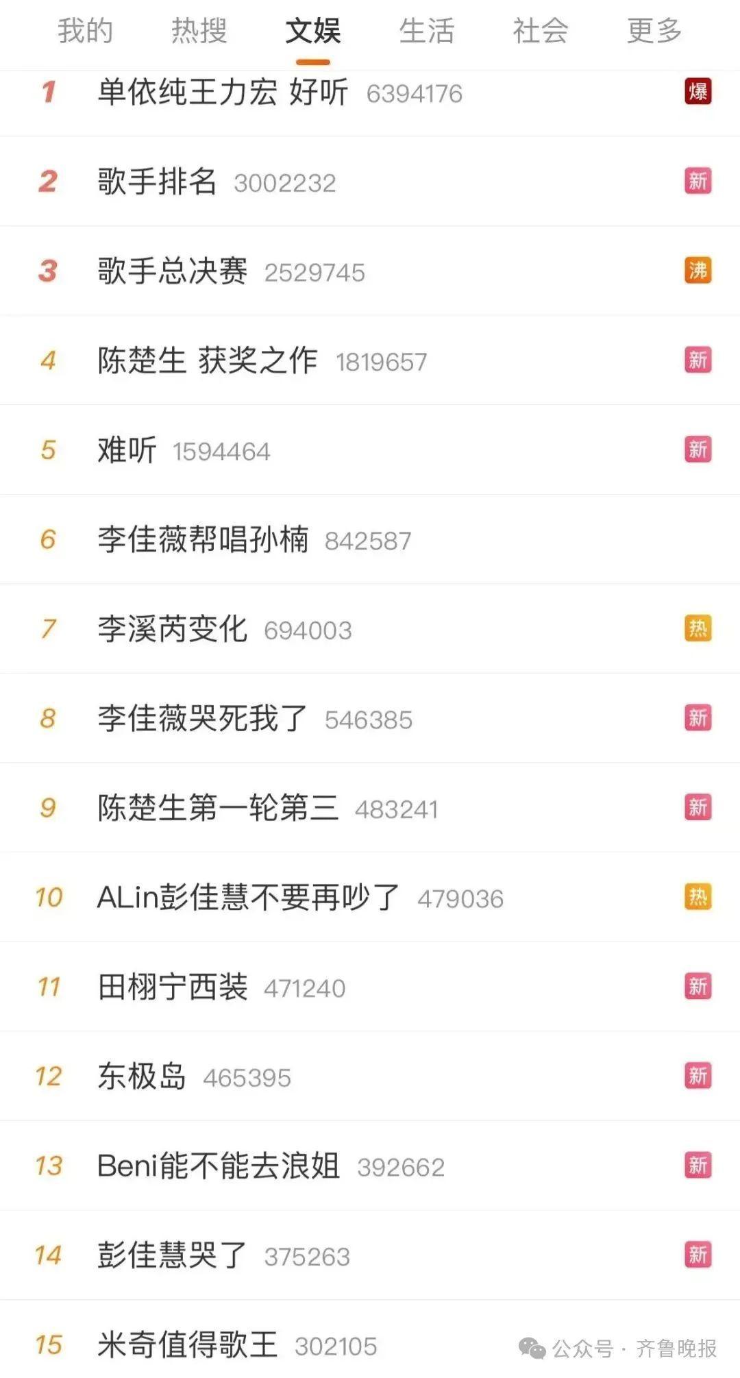 值得一提的是,当晚《歌手2025》几乎屠榜热搜,相关词条几乎挤满热搜文娱榜前排,综艺王者的IP实力依然耀眼。