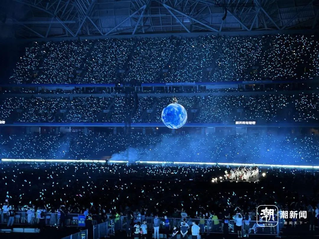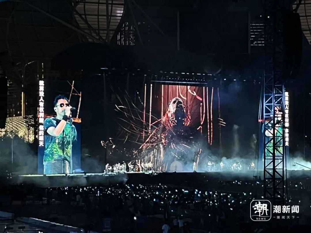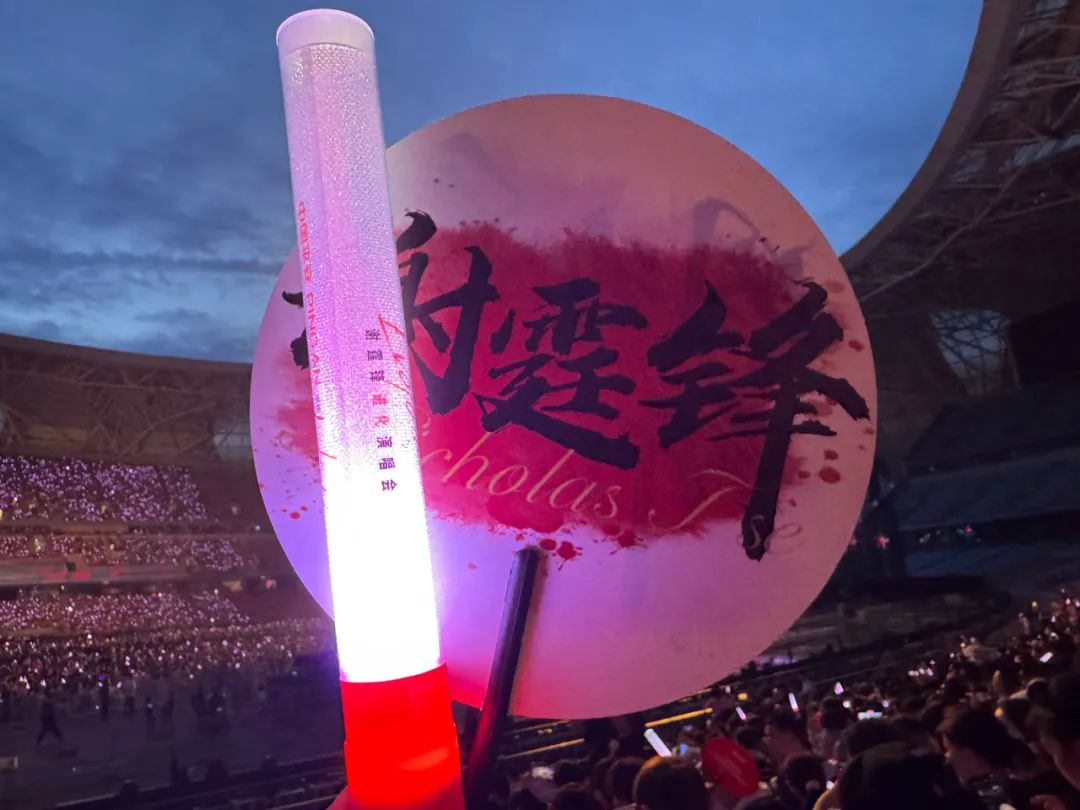 没抢到票的粉丝,三三两两聚在大莲花外围的绿化带边、人行道上。当熟悉的旋律透过体育场穹顶飘出来时,他们就跟着一起唱,举着手机录下这“场外版”的体验。“听到《只要为你再活一天》的时候,眼泪真的忍不住啊!” 一位在路边做直播的女生,对着镜头里的“宝子们”吐露心声,“虽然没进去,但感觉也参与了,值了!”