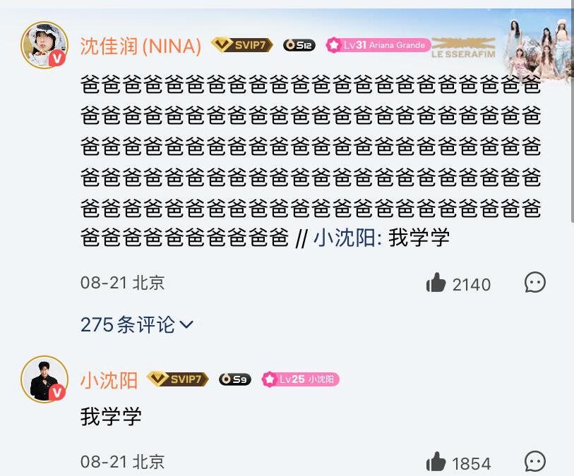小沈阳随后也现身该歌曲的评论区与女儿互动:“我学学”,沈佳润回复了他六十个“爸爸”。有网友戏称,原来这就是“美美桑内,一个劲的‘爸爸’”。