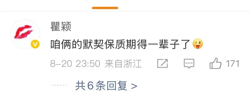 瞿颖也在评论区回复:咱俩的默契保质期得一辈子了。