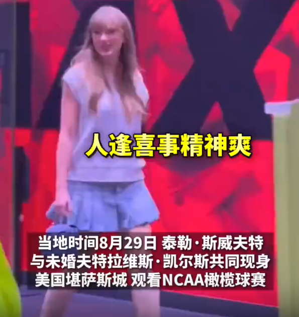 8月29日,泰勒·斯威夫特(Taylor Swift)官宣订婚后首次公开露面,与未婚夫特拉维斯(Travis Kelce)共同现身美国堪萨斯城观看橄榄球比赛。