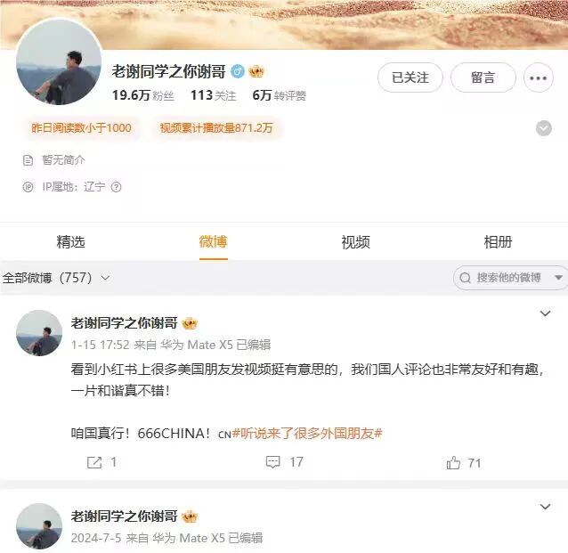 据悉,老谢曾于今年6月发文称,其收到李雪琴方的反诉状,让其删除微博,目前该条内容已不存在。
