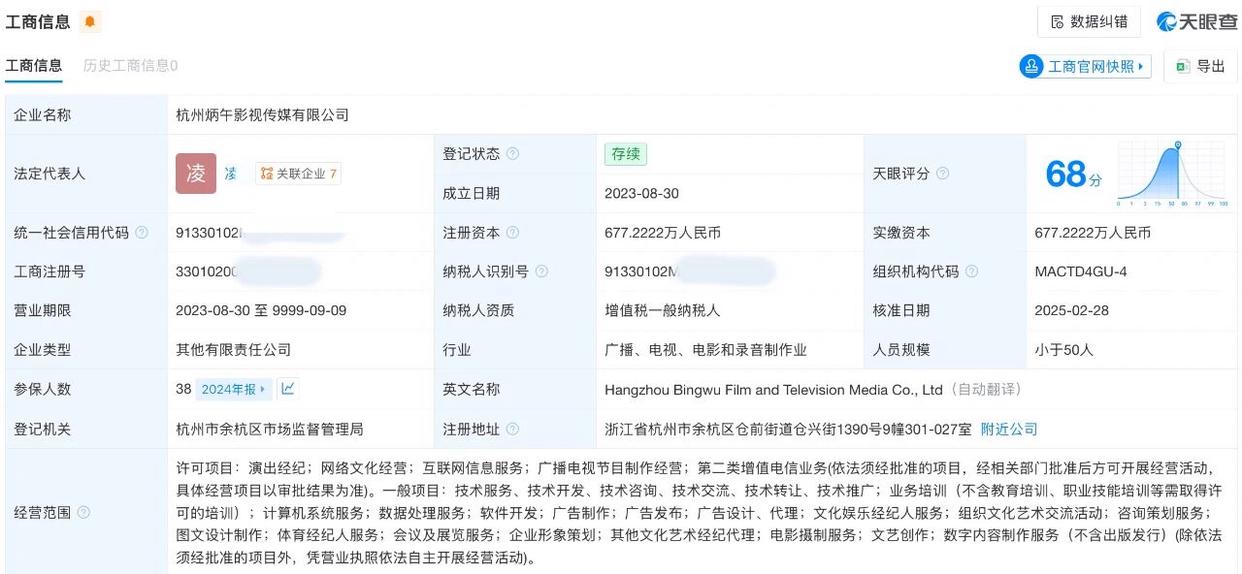 明星入场,除了台前飙戏,还有人幕后投资。2024年8月,黄晓明出品的短剧《一姐》上线,《一姐》由杭州炳午影视出品剧好看、花月清夏、西安丰行联合出品。天眼查官网显示,杭州炳午影视传媒有限公司成立于2023年,法定代表人为凌某。该公司的其中一位股东为宁波明侨投资管理有限公司黄晓明正是这家公司的实际控制人。