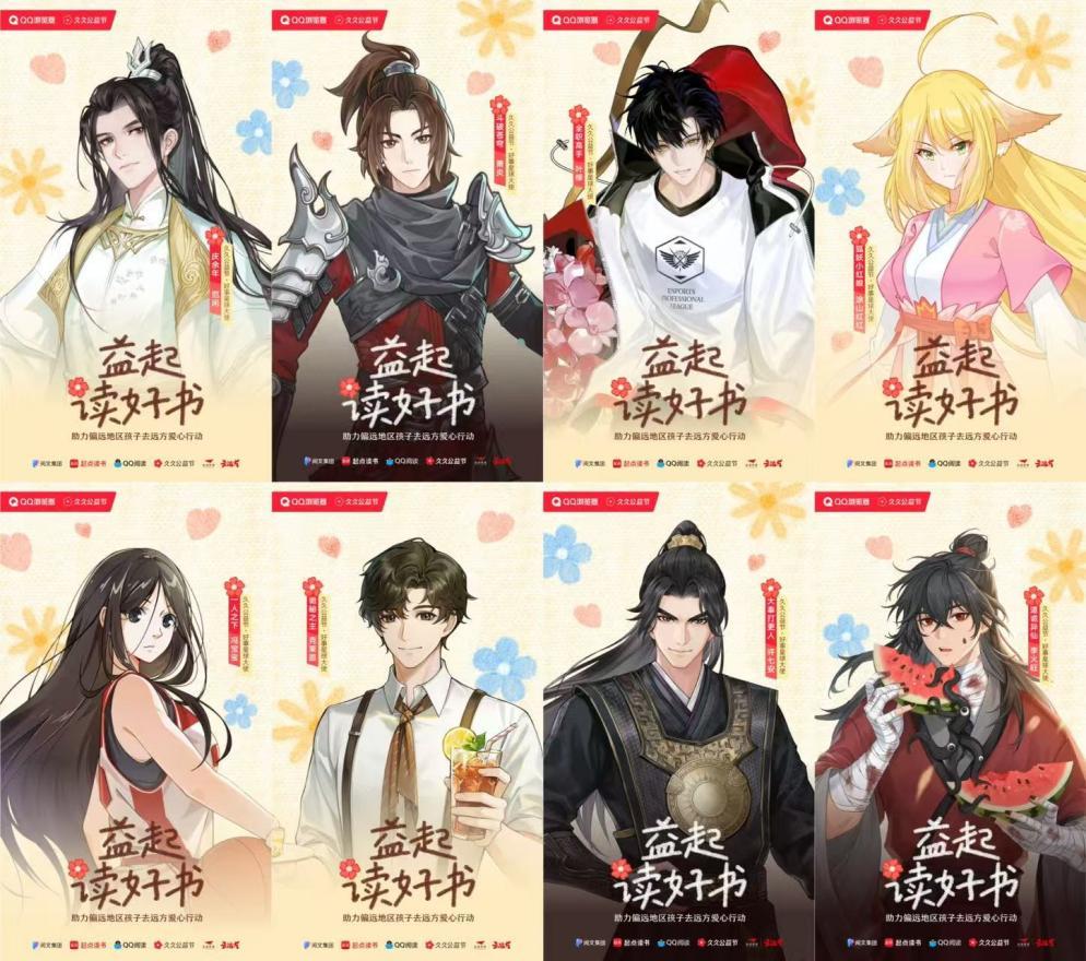本次“益起读好书”也是阅文旗下作家和IP角色参与人数最多、覆盖度最广的一次:包含狐尾的笔、会说话的肘子、孑与2、锦凰、历史系之狼、裴不了、一路烦花、远瞳等八位作家,以及《庆余年》范闲、《斗破苍穹》萧炎、《全职高手》叶修、《狐妖小红娘》涂山红红、《一人之下》冯宝宝、《诡秘之主》克莱恩、《大奉打更人》许七安、《道诡异仙》李火旺等八大IP角色。他们一起号召更多人参与进来,为有远方梦的孩子筹集爱心。