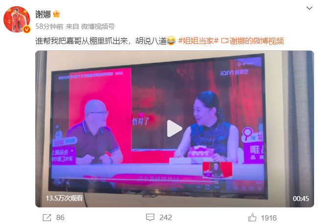 随后,谢娜也回应:谁帮我把嘉哥从棚里抓出来,胡说八道。