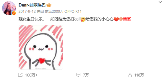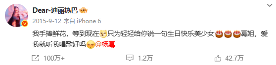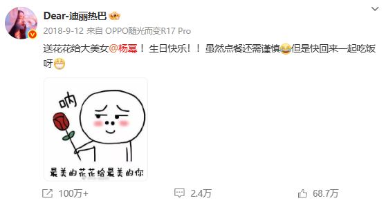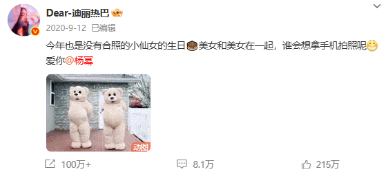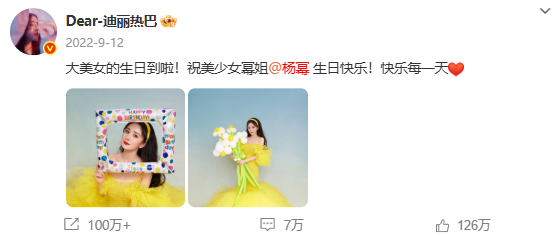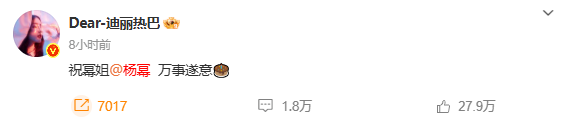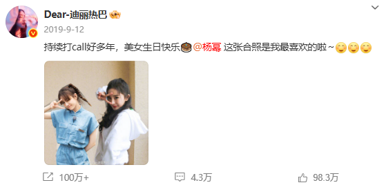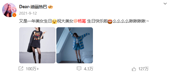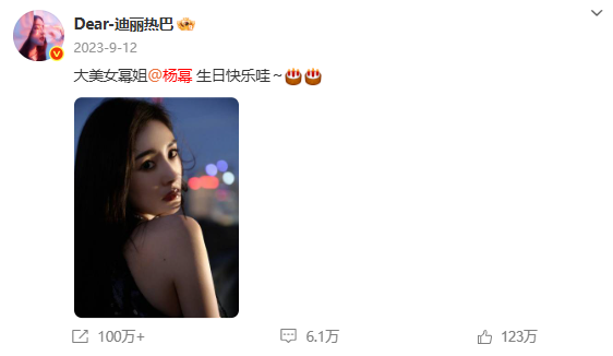 迪丽热巴零点准时为杨幂发文庆生,“祝幂姐@杨幂万事遂意🎂”据悉,这已经是迪丽热巴连续12年为杨幂卡点发文。