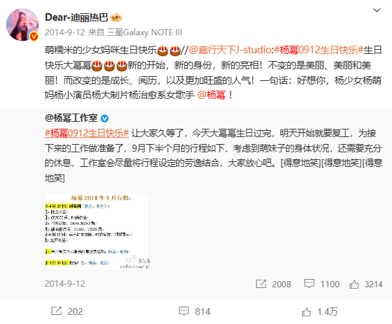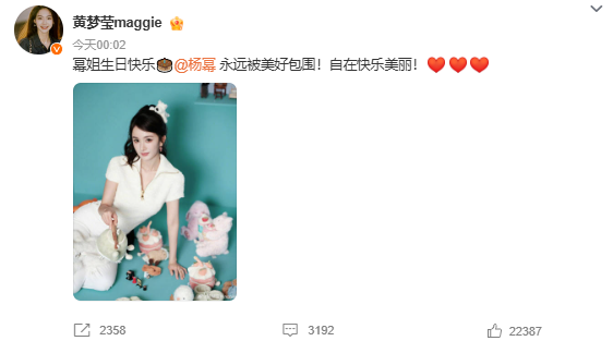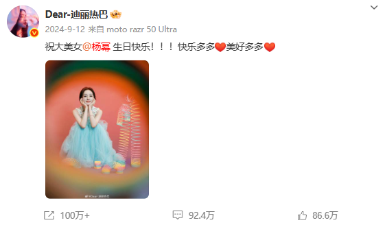 9月12日,女星杨幂迎来39岁生日,众多娱乐圈好友纷纷发文送上生日祝福,尽显好人缘。