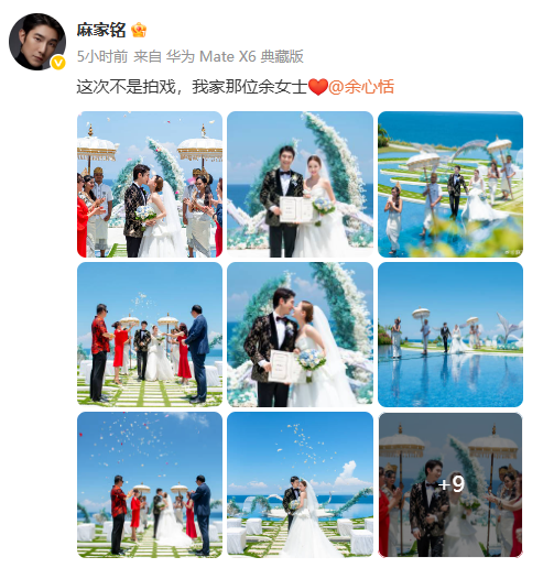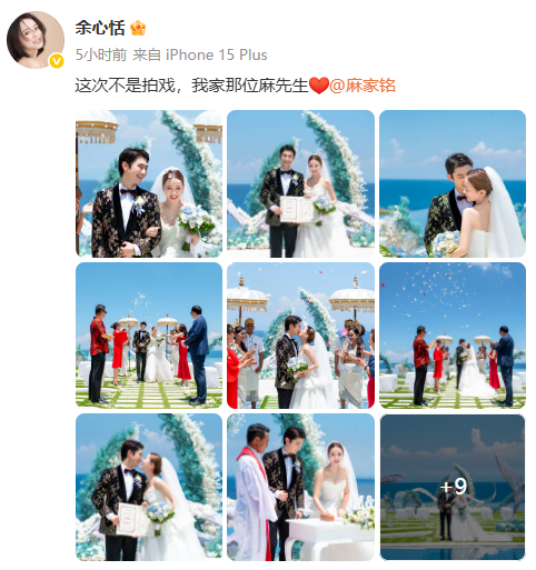 9月14日,演员麻家铭、余心恬纷纷发文官宣结婚。
