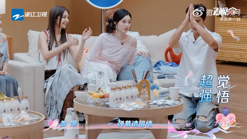姜潮跪地求原谅,并请求“弹幕请留情”,还调侃,“我虽然是个彪子,但是我从来不发飙!”
