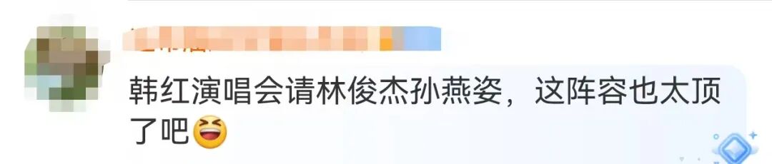 2023年林俊杰北京演唱会曾邀请韩红担任嘉宾,两人合唱了《飞云之下》。现场唱完歌后,韩红亲吻了林俊杰的脸颊,一度引发热议。