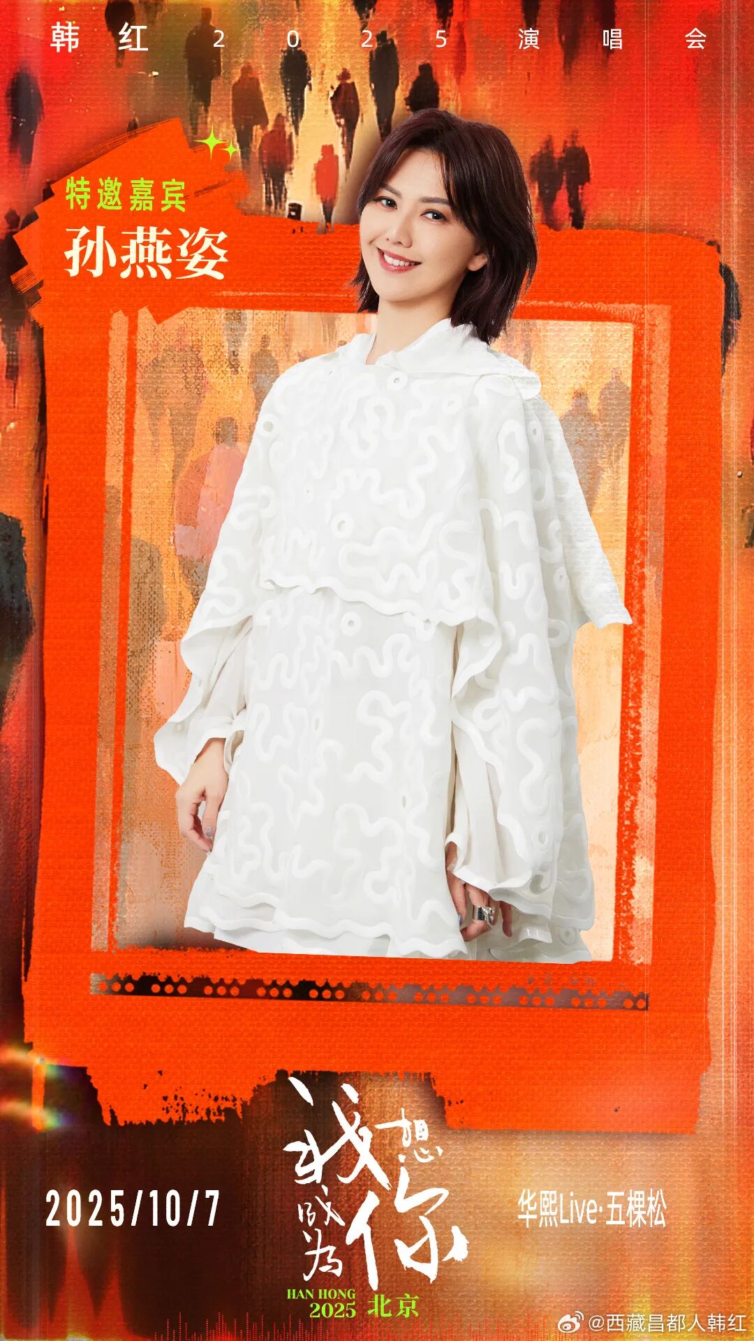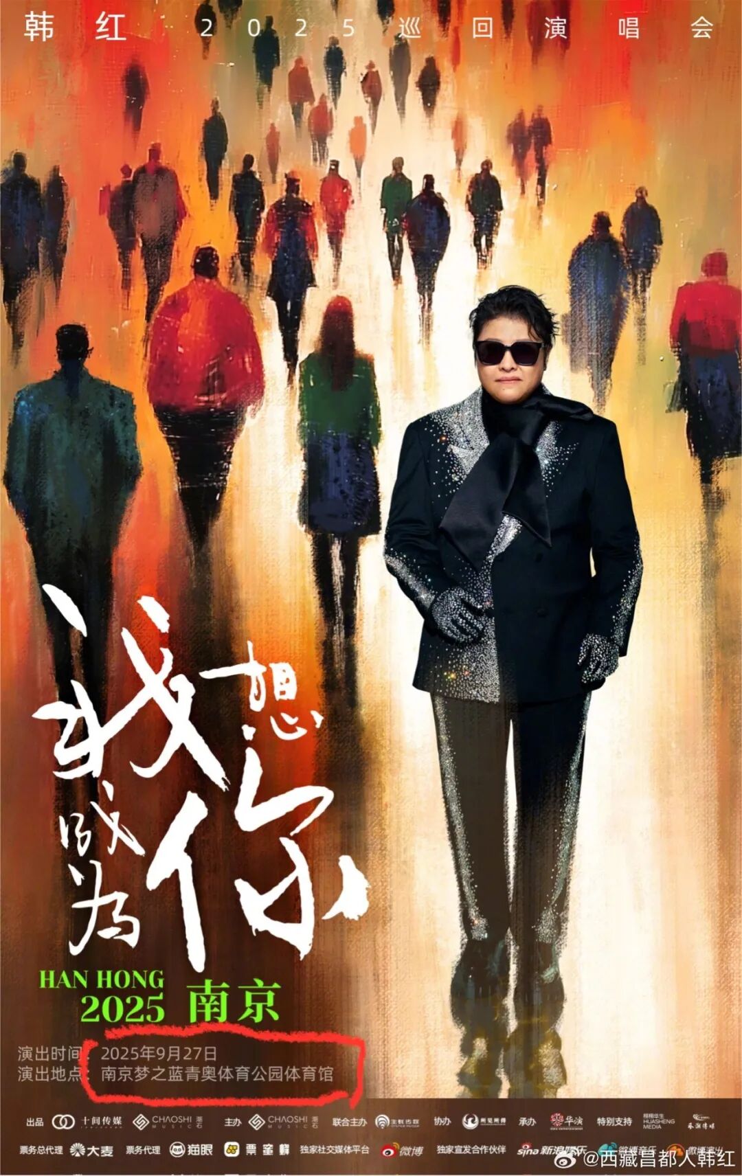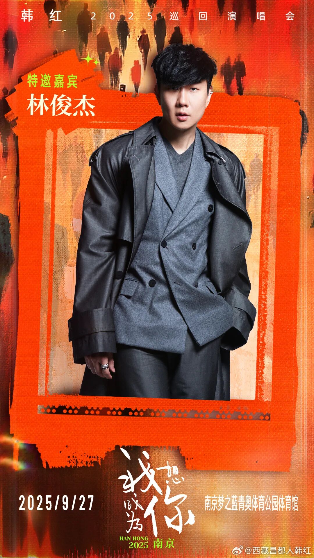 当天,知名歌手韩红官宣“我想成为你”巡回演唱会的嘉宾——9月27日南京站林俊杰 ,10月7日北京站孙燕姿。