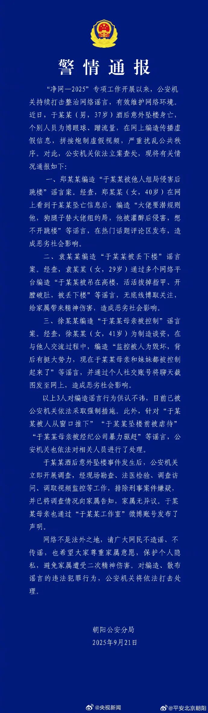 9月21日晚,警方查处涉于朦胧坠楼谣言后,演员范世錡在社交平台发文: