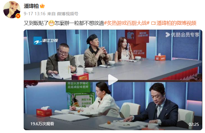 此前,潘玮柏在个人社交平台自我调侃:“又到饭点了,怎么办一粒都不想放过”。