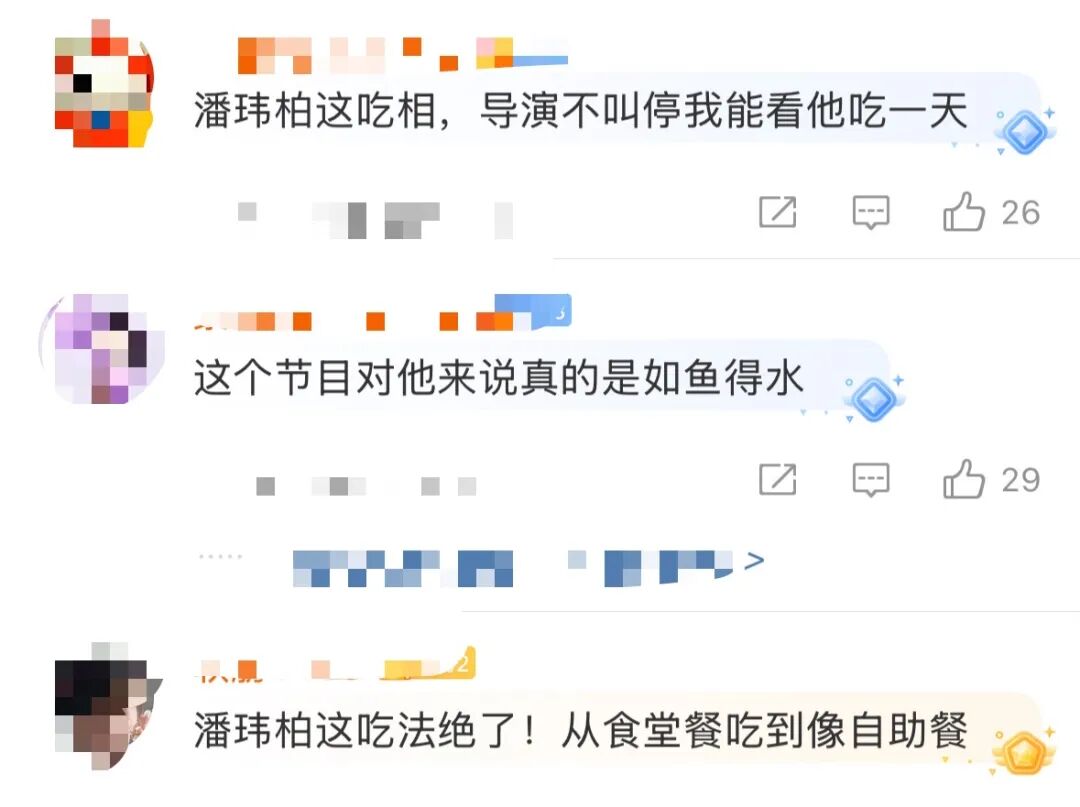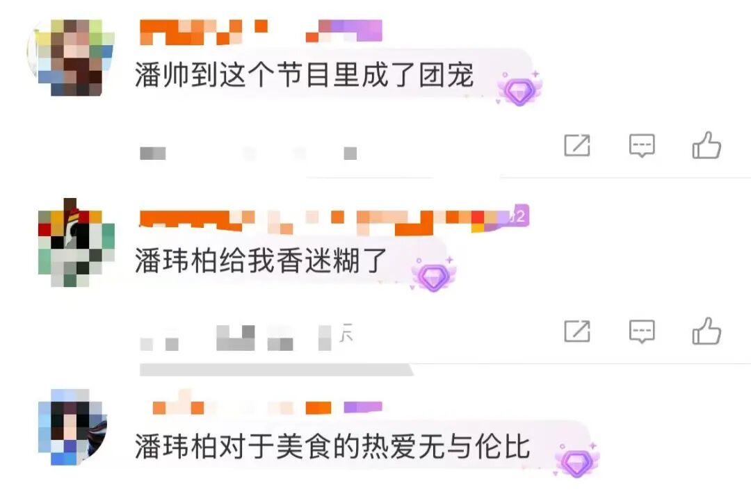 不少网友被香迷糊了:“潘帅到这个节目里成了团宠”“潘玮柏这吃相,导演不叫停我能看他吃一天”,还有网友:“食堂餐吃成自助餐”。