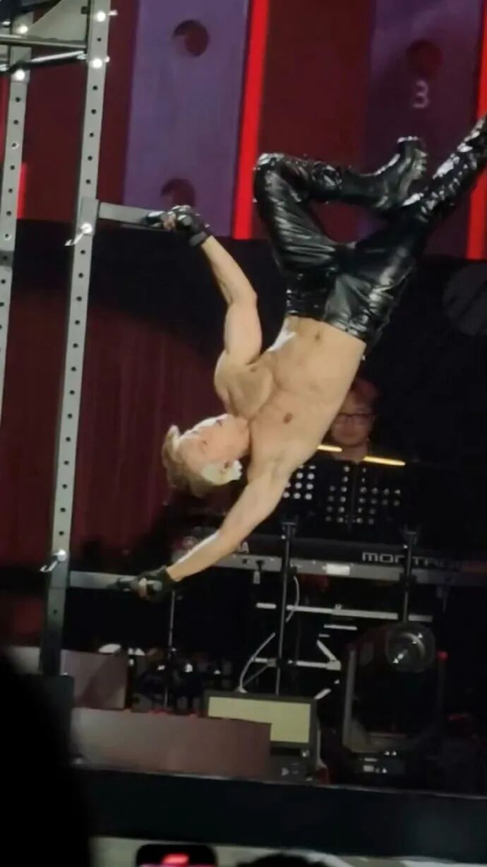 3月9日华晨宇福州演唱会上,三层升降台因机械故障未按计划下降,华晨宇被困高处。他紧急翻越三个升降台撤离换装,观众误以为是舞台设计。