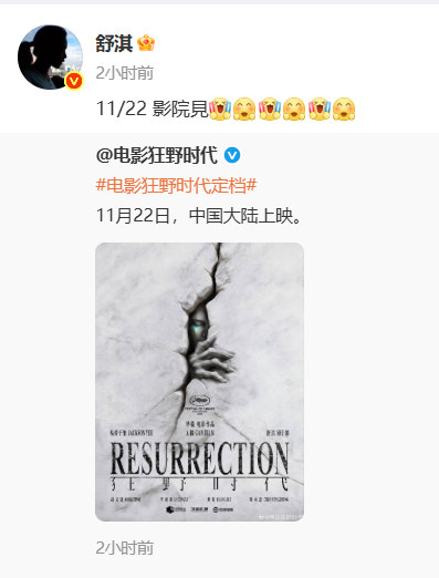 9月28日,主演易烊千玺、舒淇等演员发文:11月22日,影院见。