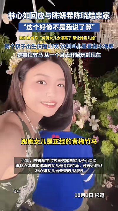 今天,“林心如回应与陈妍希陈晓结亲家”的话题,冲上文娱榜热搜。