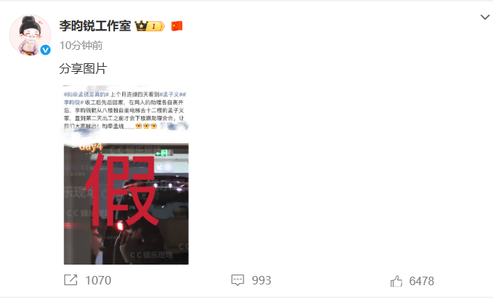 刚刚,@孟子义工作室 和 @李昀锐工作室,同时回应此事,发了好大一个“假”。