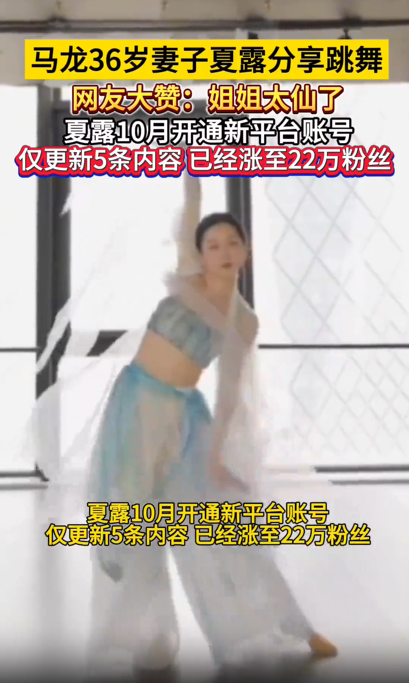 10月11日,马龙妻子夏露在社交平台分享了一则自己跳古风舞蹈的视频,并配文:降温了也不能偷懒哦。