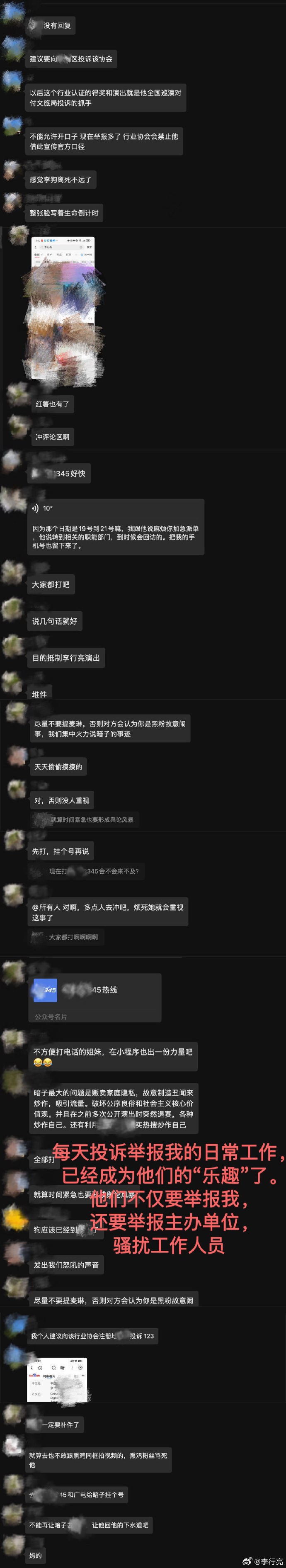他晒出多张遭举报的截图,透露因为这档节目,生活会深陷舆论和网暴的漩涡,邀自己演唱主题曲的剧组被骚扰、电视剧被投诉、播出平台也遭投诉。