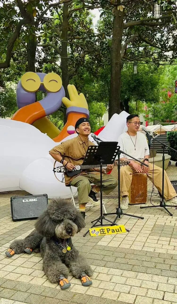 对于曾经在静安公园门口做过四年多街头艺人的庄Paul而言,如今在西岸梦中心的演出方便多了。“当时演出要自己带设备器材,但这里都给你准备好。”他说,“西岸滨江现在就是上海的一个大网红,永远人来人往,不会缺少流量,不管是人流量还是网上的流量。”话里带着一点自谦,把自己的受欢迎更多归功于环境的成就。
