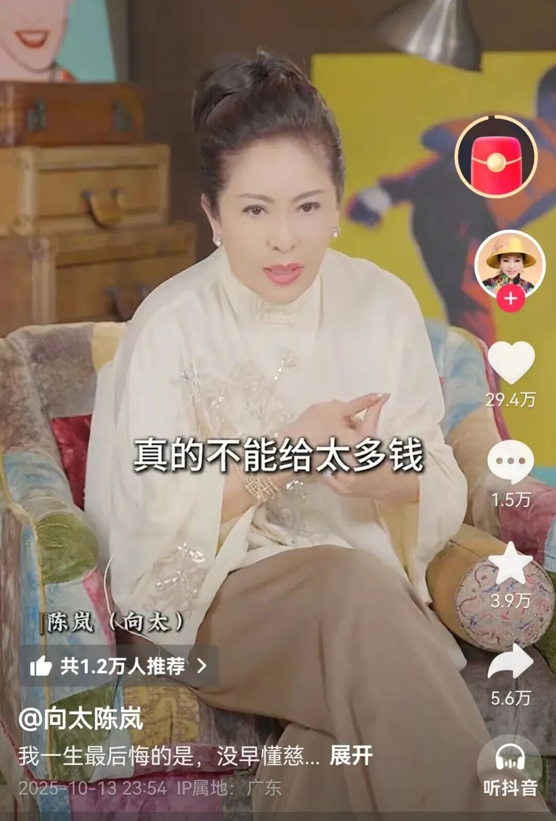 10月13日,向太陈岚通过社交媒体发布视频,首次公开详谈次子向佑的成长经历,并结合自身经历反思家庭教育,提及 “慈母多败儿” 的感悟,引发公众对豪门子女教育及向佑个人情况的关注。