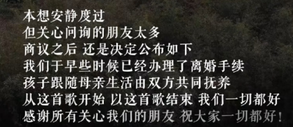 10月14日,李亚鹏@一号立井@海哈金喜官宣离婚:“我们于早些时候已经办理了离婚手续,孩子跟随母亲生活,由双方抚养。”