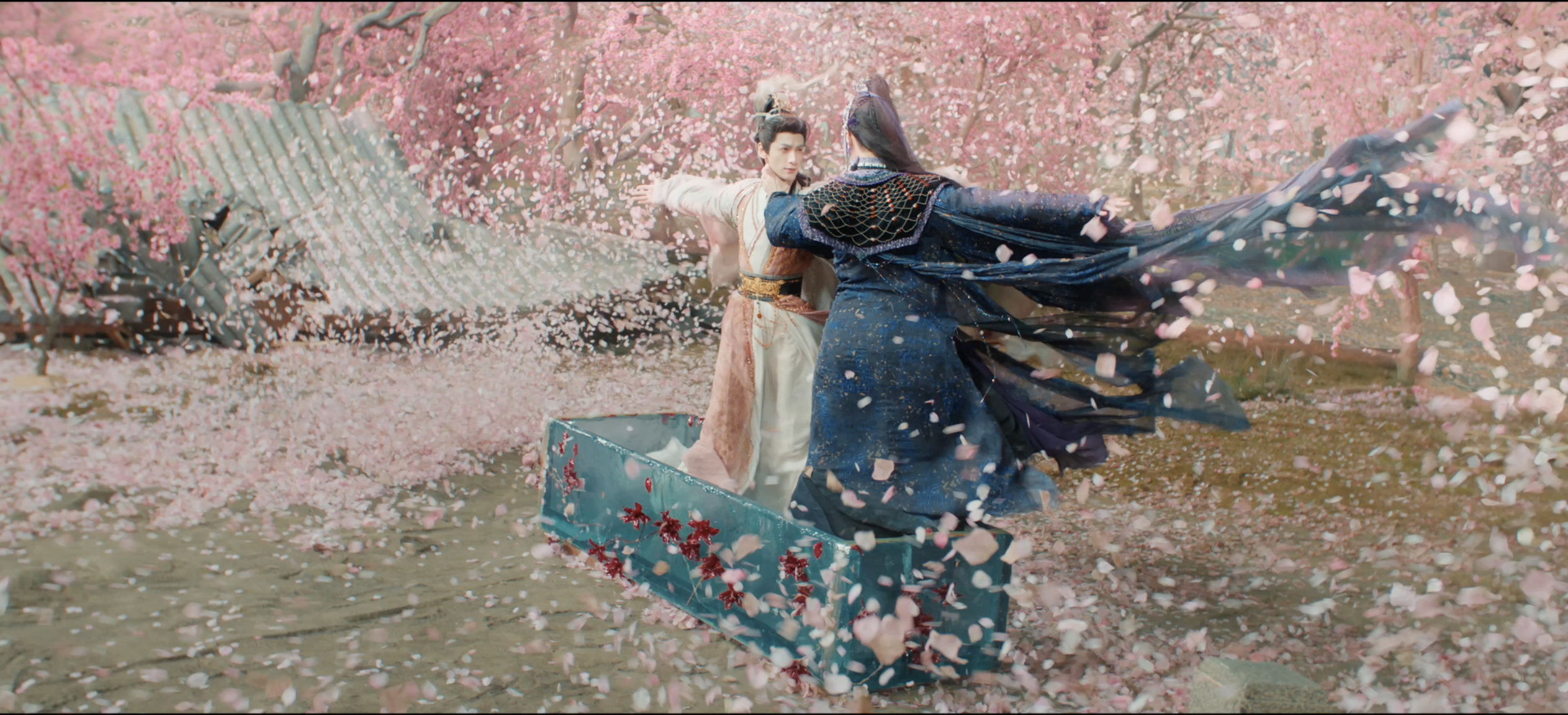 《水龙吟》在武打美学上实现了维度跃升,以“量级翻倍、意境破格”之势,突破了传统打戏的风格定式。剧集不仅安排了远超常规体量的动作场面,更匠心构建多场风格迥异、堪称“神级”的意境之战。