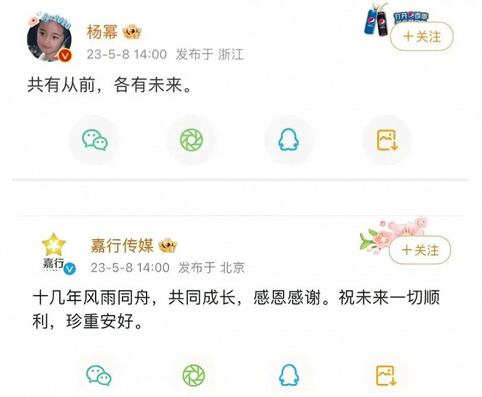 2023年5月,杨幂就已经发微博宣布与嘉行传媒解约,结束了长达十几年的合作关系。但那时,杨幂手里依然持有嘉行15.18%的股份,直至退出股东,才彻底与嘉行”人财两清“。
