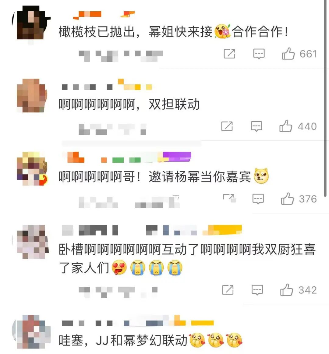 JJ林俊杰在评论区回复杨幂工作室:“好听!下次台上一起唱~!