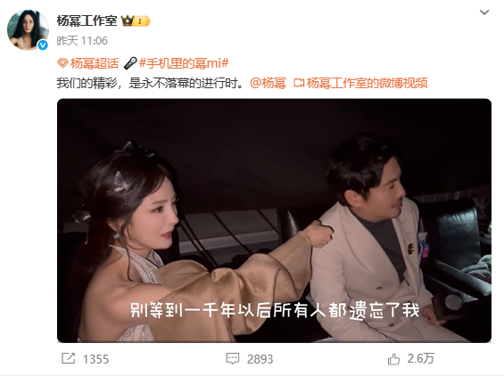 随后,杨幂在后台“合唱”起了林俊杰的《一千年以后》:“无法深情挽着你的手浅吻着你额头,别等到 一千年以后,所有人都遗忘了我……”