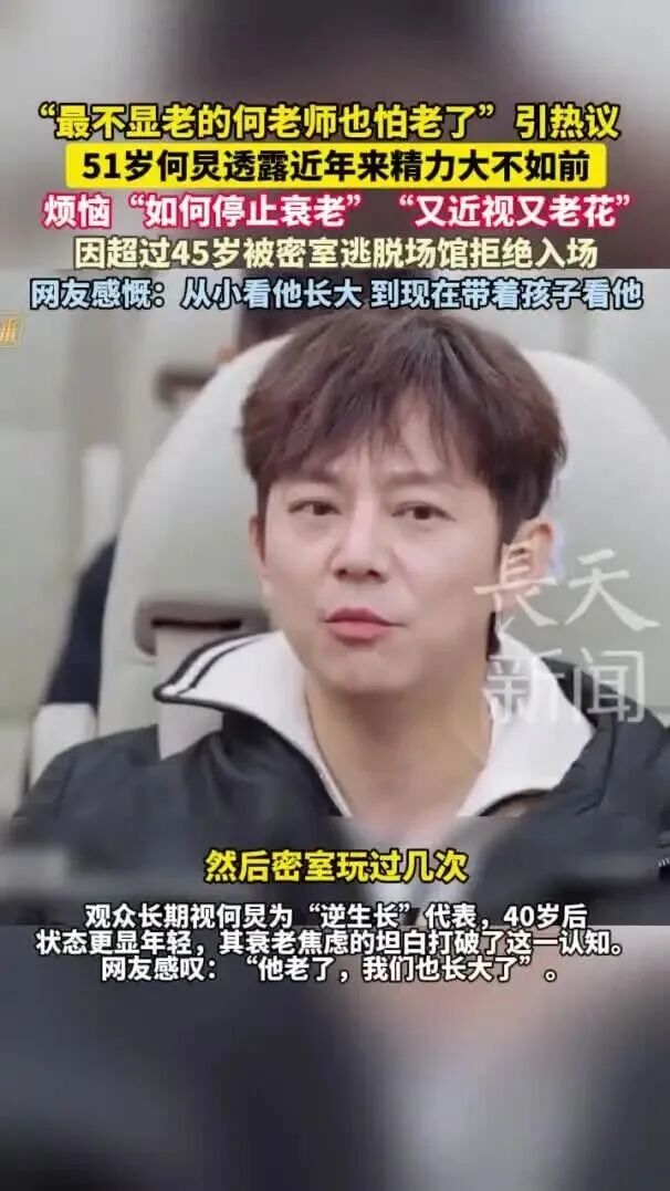 此前有媒体报道,51岁的何炅近期在节目中坦言,近年精力大不如前,背台词需反复查看,还自曝因超年龄被密室逃脱场馆拒绝入场。