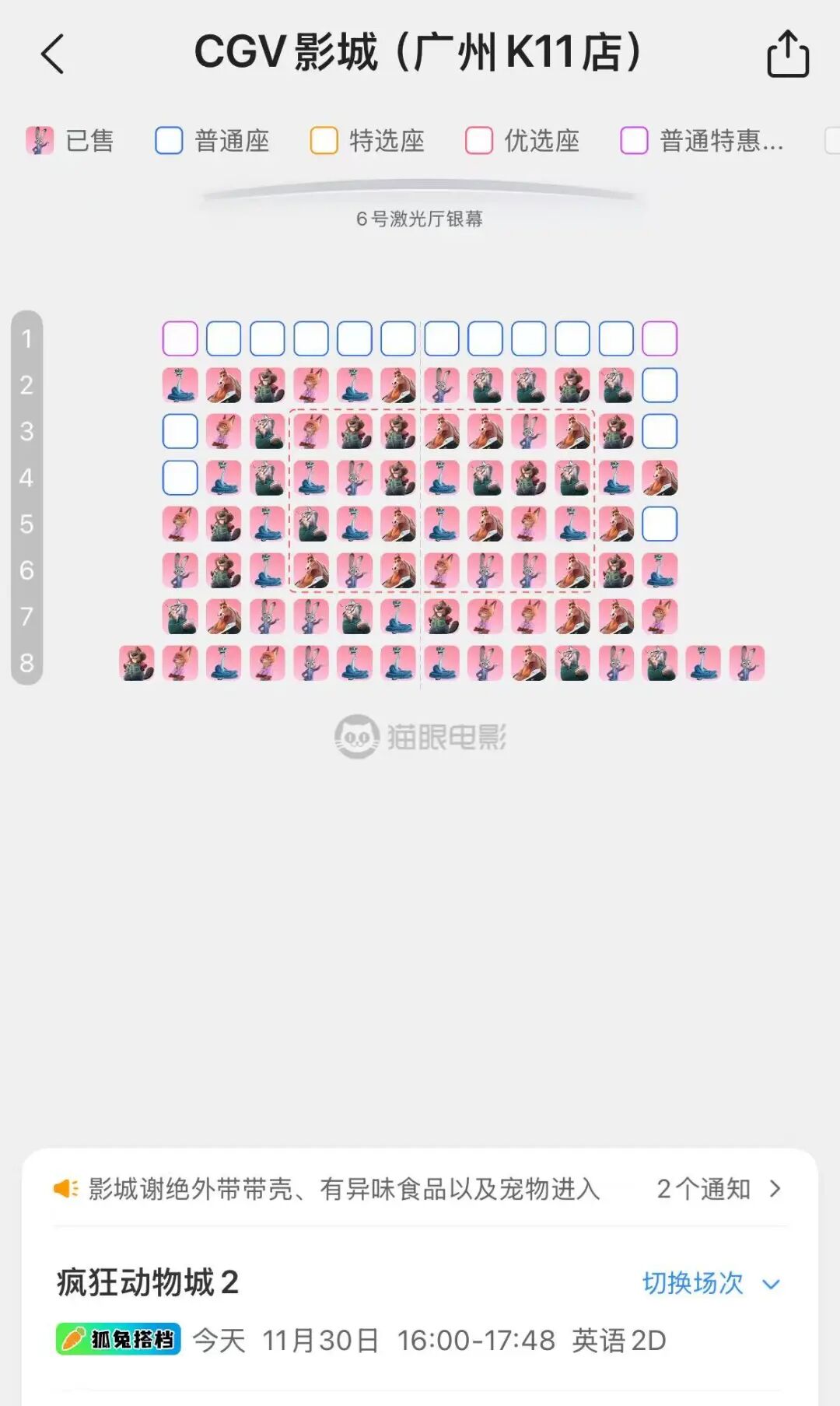 搜索发现广州多个影院临近场次接近爆满状态