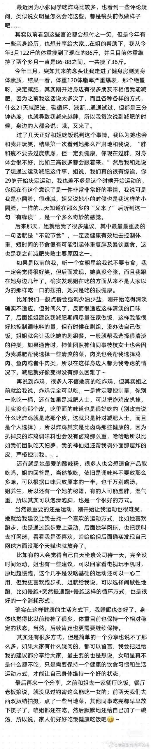 随后,她也把自己的减肥食谱分享在了社交平台。