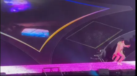 网友发布的视频显示,身着粉色外套的阿信走到主舞台与灯光连接处时没有注意到台阶,先是崴脚而后直接跌落到舞台下方,现场响起一片惊呼声。