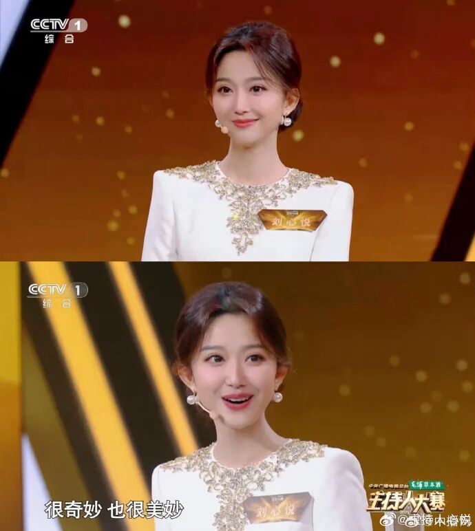 有意思的是,主持人大赛的评委和主持人,也是她今年春晚的主持搭档——撒贝宁和尼格买提。