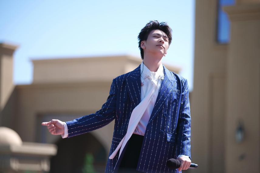 金色阳光下,湖面上的黑胶唱片舞台熠熠生辉。作为节目发起人的迪玛希率先登场,以一曲《Fire(焰)》点燃了整个舞台。