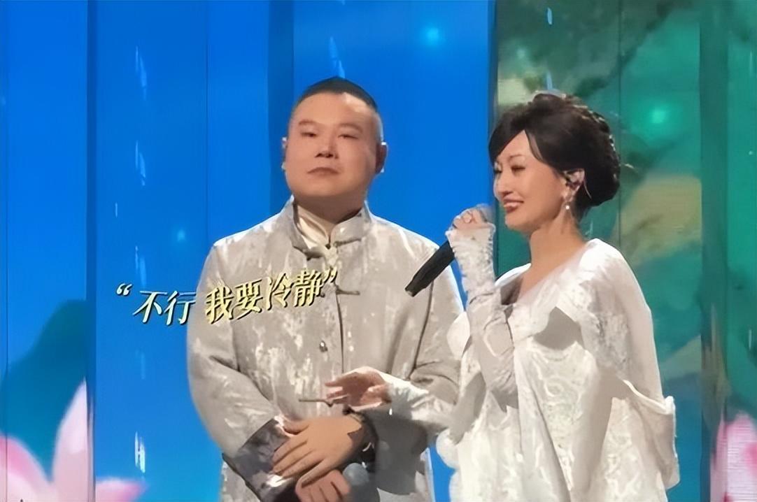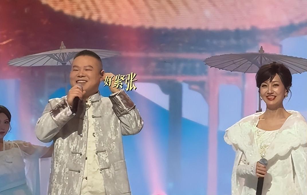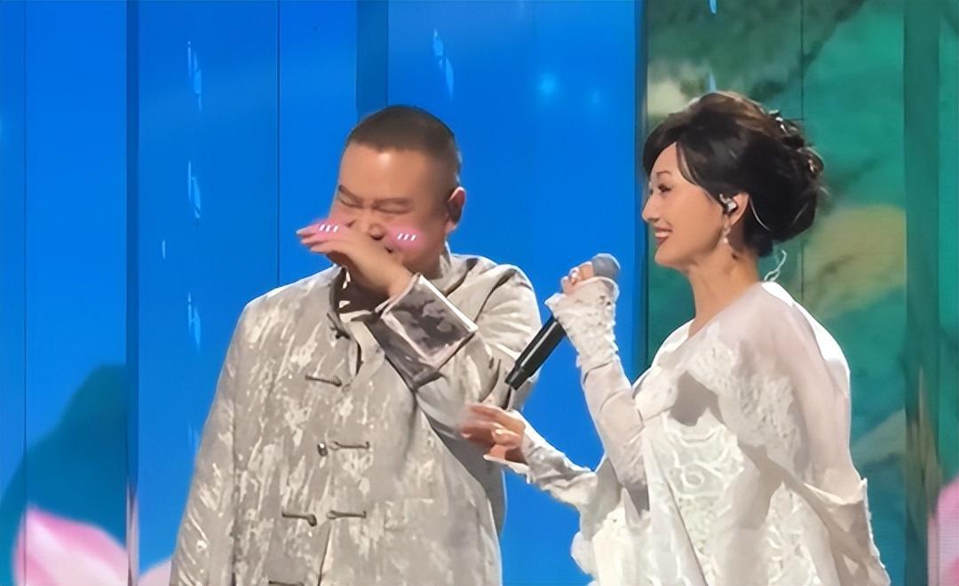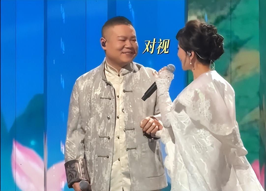 视频中,赵雅芝站在舞台上唱着歌,牵起一旁岳云鹏的手。