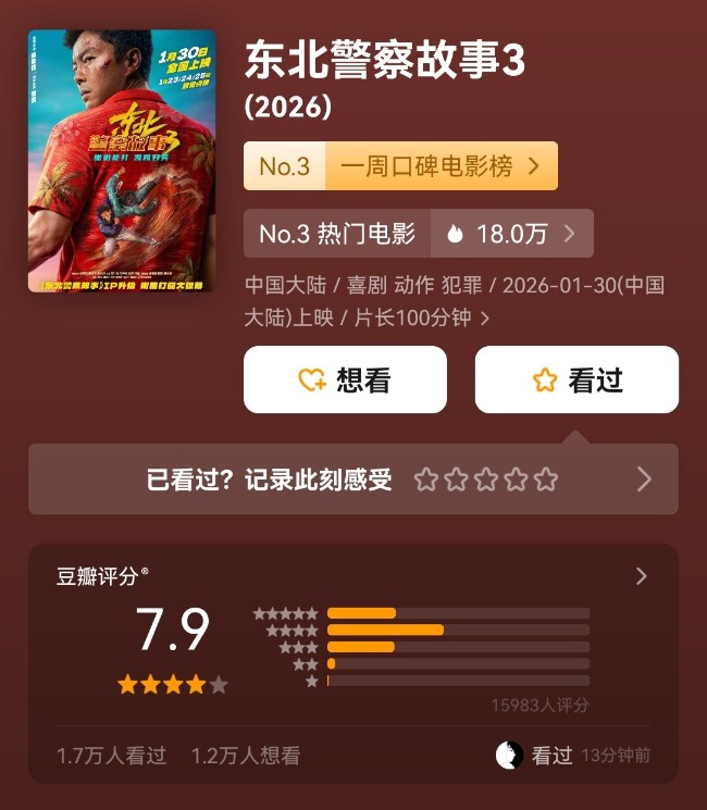 《东北警察故事3》虽然没有飞跃式的进步,但是7分起步的水准肯定是有的,这是那种好看的,但是特别费演员的动作片。