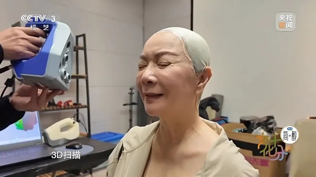 技术团队精准测量了蔡明的头围、臂长、臂展等各项关键身体数据,并采用3D扫描技术进行建模。扫描过程中,蔡明根据提示反复切换表情。现场技术人员介绍,这是为了捕捉蔡明面部每一寸皮肤的运动轨迹,为仿生机器人的结构设计提供参考,为内部皮肤与肌肉的设置提供依据。